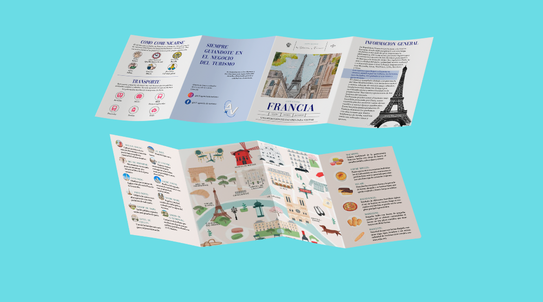 Diseño de folleto desplegable para turismo en Francia